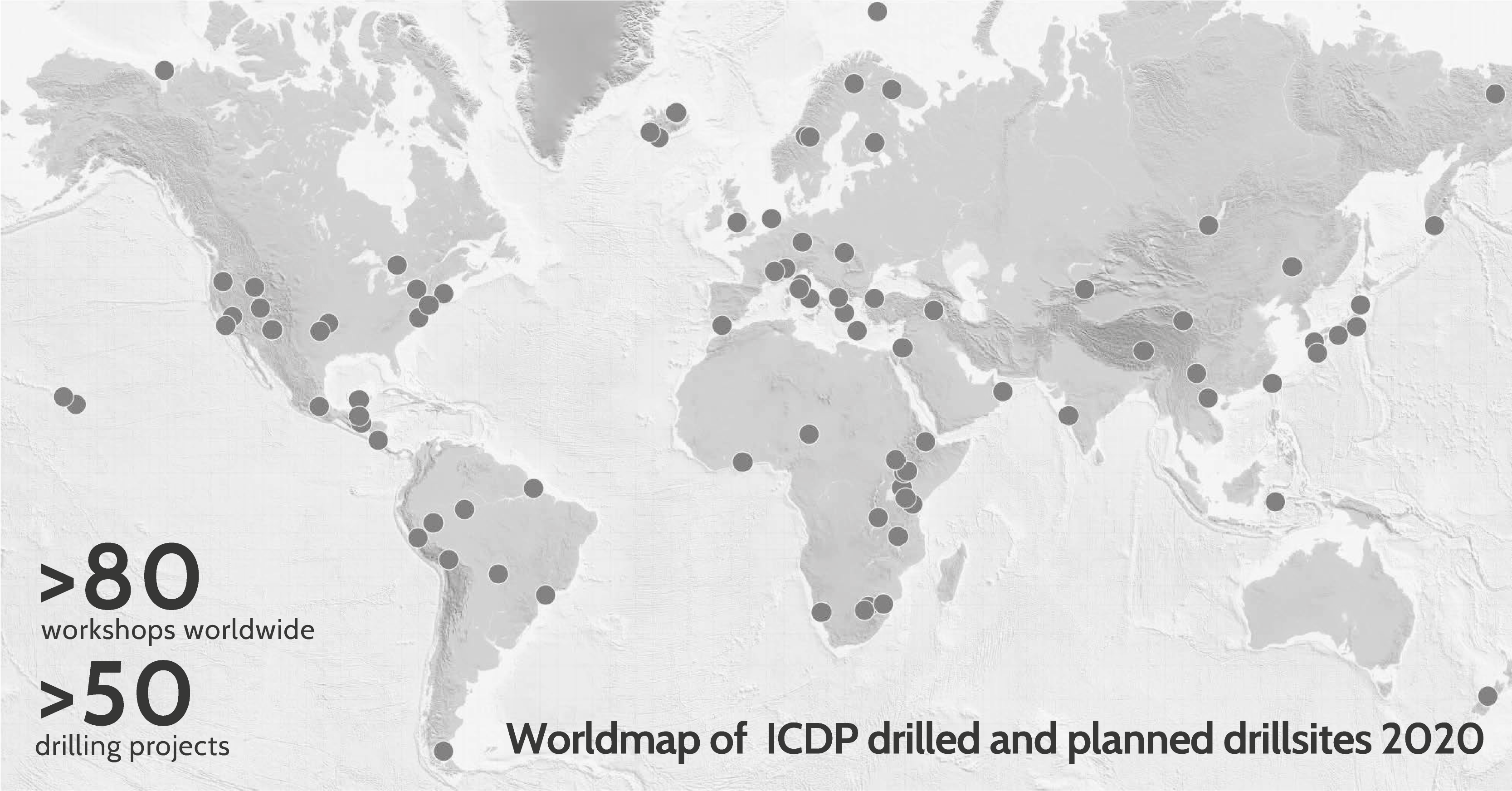 The International Continental Scientific Drilling Program (ICDP; Figure 2), founded in 1996, is a multinational program that helps fund geoscience projects centered around continental drilling. Along with financial assistance from ICDP, 22 ICDP-affiliated countries, and UNESCO, these continental drilling projects can be fully funded. Currently, the ICDP headquarters is in the GFZ German Research Centre for Geosciences, which hosts highly qualified scientists and administrators who assess, fund, and coordinate drilling projects proposed from around the world (Figure 3). The targeted ICDP drilling projects aim to provide new insights into 1) Geodynamic processes, 2) Sustainable georesources, 3) Natural hazards, and 4) Environmental changes. Education and outreach are integral to the ICDP policy to ensure transparency and public acceptance. Click here for more information on the ICDP projects.